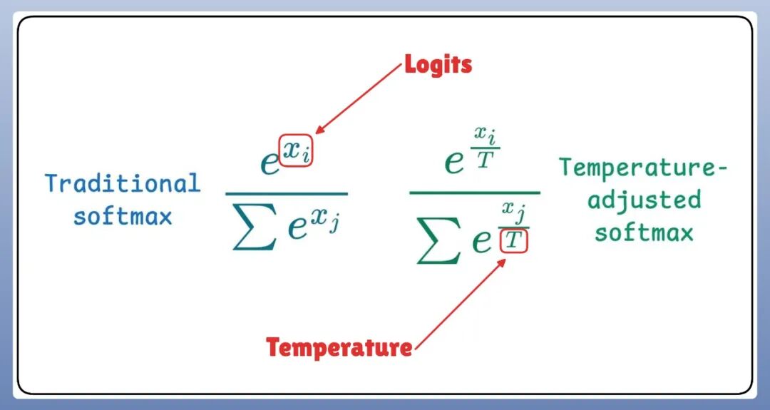 所以,在 softmax 函数中,温度引入了一些调整,反过来这种调整又影响了采样过程。