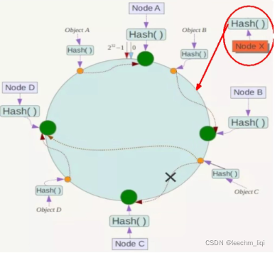 数据量增加了,需要增加一台节点Node X,X的位置在A和B之间,那受到影响的也就是A到X之间的数据,重新把A到X的数据录入到X上即可,不会导致hash取余全部数据重新洗牌。