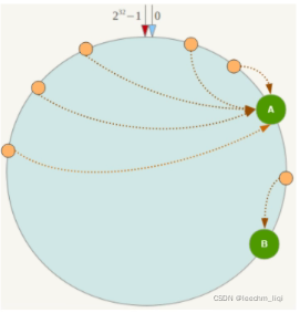 一致性hash算法必然有个hash函数并按照算法产生的hash值,这个算法所有可能hash值会构成一个全量集,这个集合可以成为一个hash空间[0,2^32-1],这个是一个线性空间,但是在算法中,我们通过适当的逻辑控制将他收尾相连(0 = 2^32),这样让它逻辑上形成一个环形空间。
