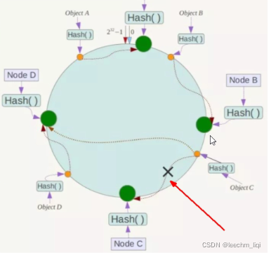 假设Node C宕机了,可以看到此时对象A,B,D不会受到影响,只有C对象会重新定位到Node D上。一般的,在一致性hash算法中,如果一台服务器宕机了,则受影响的数据仅仅是次服务器到其环空间中前一台服务器(即沿着逆时针方向行走遇到哦的第一台服务器)之前的数据,其他不会受到影响,简单来说,就是C挂了,受到影响的只是B,C之间的数据,并且这些数据会转移到D进行存储。