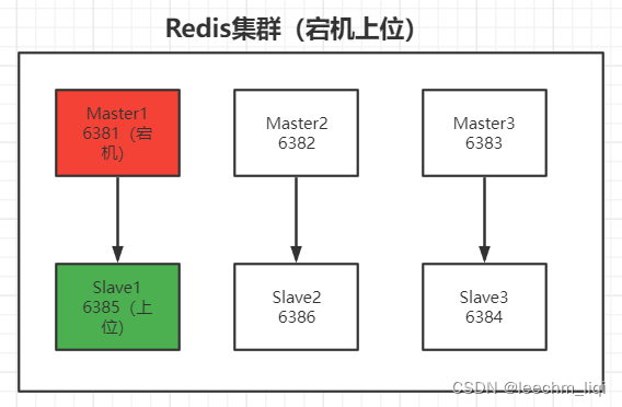 若此时,6381这台机器修复好了,这个时候6381跟6385的主从关系如何呢?其实很简单,6385还是master,恢复的机器6381变成了slave