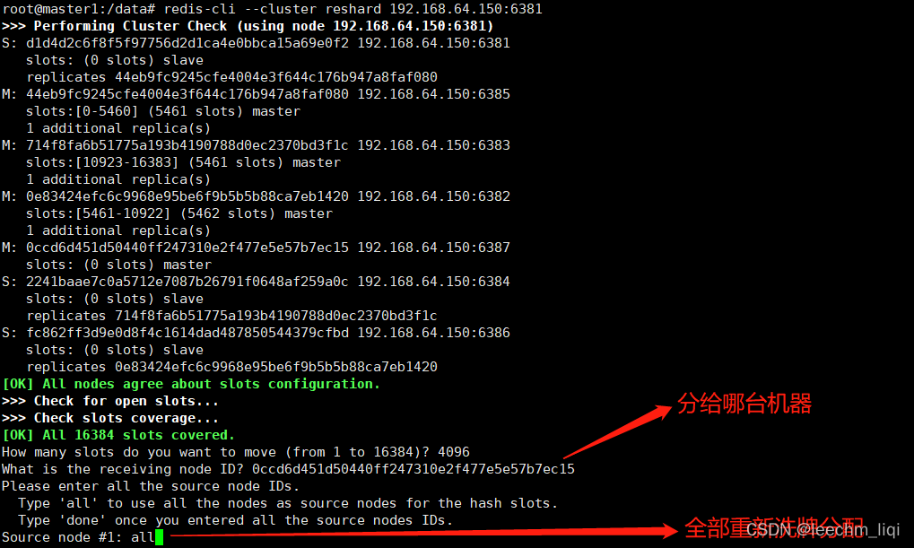 root@master1:/data# redis-cli --cluster reshard 192.168.64.150:6382