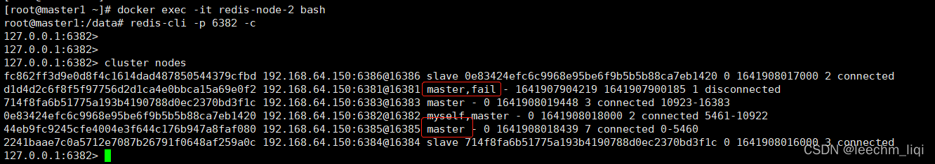 [root@master1 ~]# docker exec -it redis-node-1 bash
