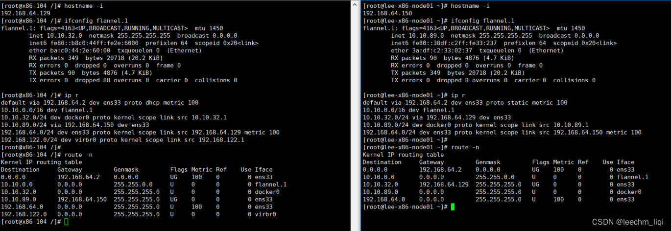 然后start flannel的服务即可,这个时候我们发现多出了一个叫做flannel.1的网卡,并且地址都是唯一的,根据上面定义的Network池随机生成的唯一的地址
