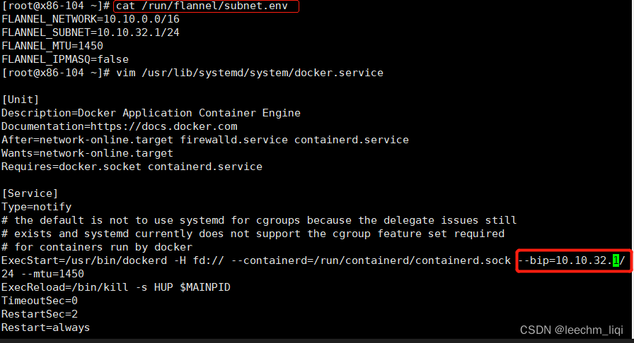 因此这个时候我们去强行修改docker的启动参数,这里主要是修改bip,即docker0网桥的网段地址