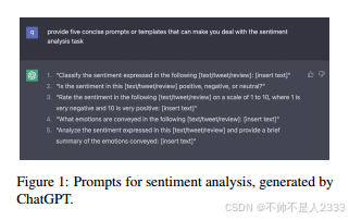 其中[x]是任务插槽。以情感分析任务为例,我们在图1中展示了这个过程。我们在初步实验中用这五个候选提示评估了ChatGPT在情感分析任务上的表现,并发现性能略有差异。因此,为了简化,我们为每个任务选择了一个典型提示,并在表1中展示它们。