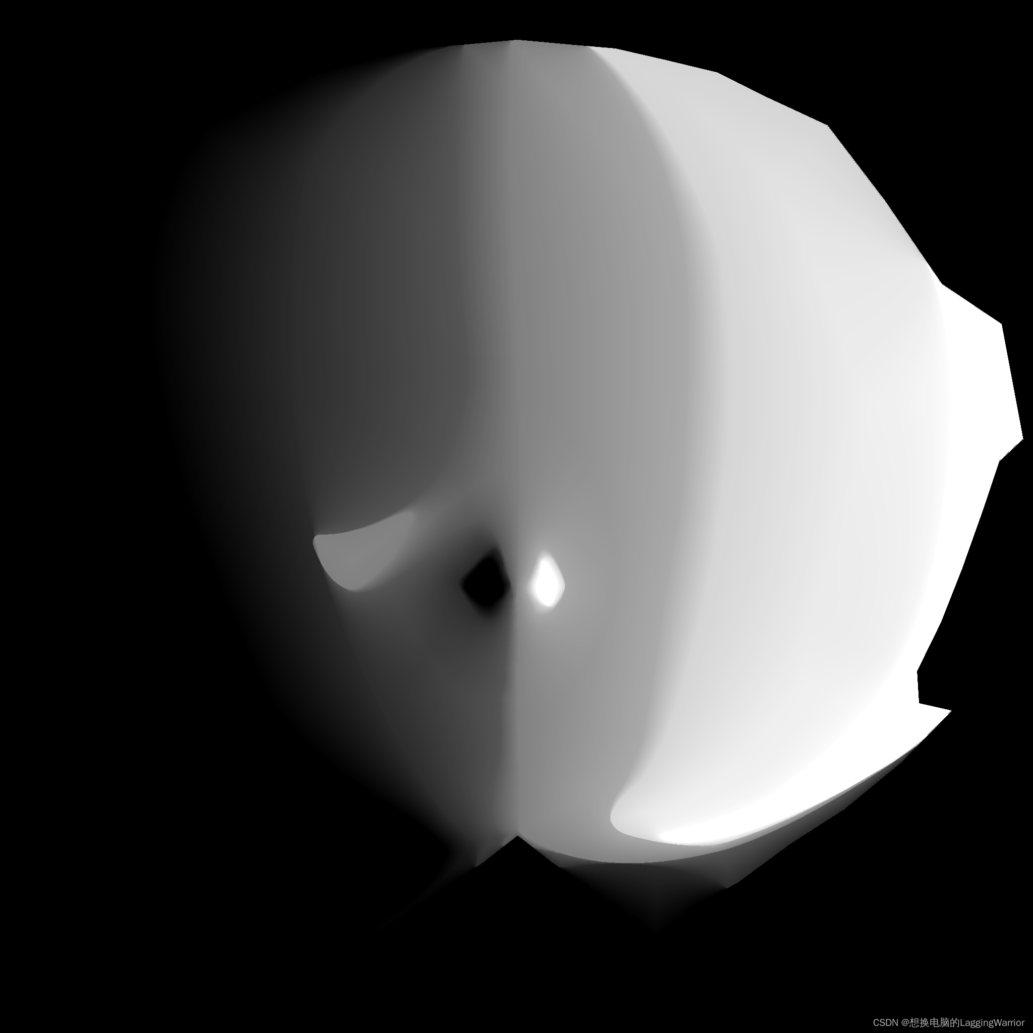 原来,这个模型的脸颊是凸起的,而嘴部是凹陷的,这意味着我们不可能通过模型的轮廓来计算出我们想要的阴影,怎么办呢?