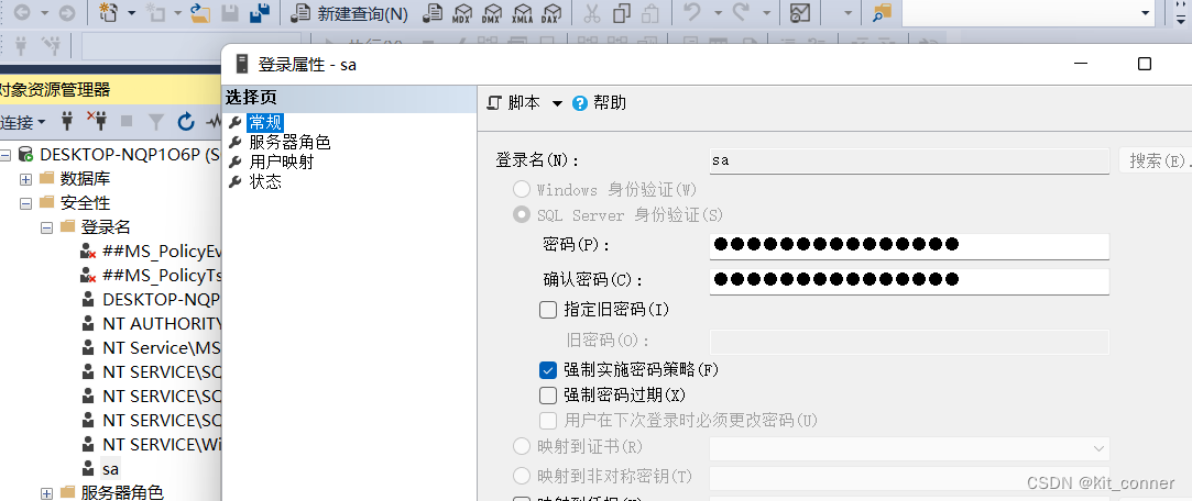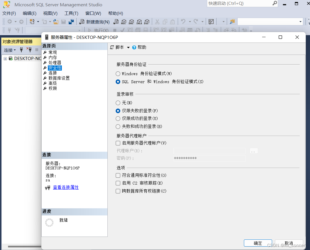 混合模式验证就比较复杂,当本地用户访问sql时候采用windows身份验证建立信任连接,当远程用户访问时由于未通过windows认证,而进行sql server认证(使用sa的用户也可以登录sql),建立“非信任连接”,从而使得远程用户也可以登录。
