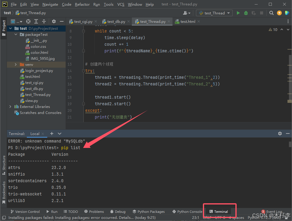 -no-cache-dir:这个选项指示 pip 不使用缓存目录进行安装。通常情况下,pip 会将已下载的包缓存到本地,以便在后续安装时重复使用。使用--no-cache-dir 可以跳过缓存,直接从源下载最新的包。在初学python时,经常需要安装相应的工具包,就可以通过Terminal进行手动安装,可能会遇到。有些情况,一些包的依赖会导致冲突,可以尝试安装不同的版本,或者使用命令查看依赖关系。想要确认输入的包名是否正确,可以到PyPI网站进行确认。当确认指定版本是存在的,可以进一步查看可用版本。