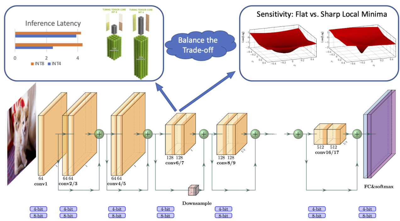 CVPR2019Abstract我们建议通过一个可训练的量化器来学习量化激活和权重,从而转换和离散它们。具体地说,我们参数化量化区间,并通过直接最小化网络的任务损失得到其最优值。在4bit能达到32bit的精度,在更低比特也能减小精度下降。此外,我们的量化器可以在异构数据集上进行训练,因此可以用于量化预先训练过的网络,而无需访问它们的训练数据。用ResNet-18,-34和AlexNet,在imagenet上训练,达到了当时最先进的精度。Introduction(优化整网loss,学