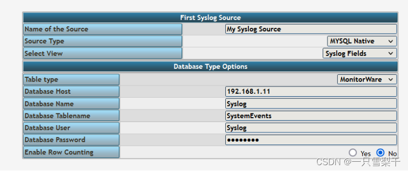 *.info;mail.none;authpriv.none;cron.none :ommysql:192.168.1.11,Syslog,Syslog,admin123 //删除原来的,增加此项