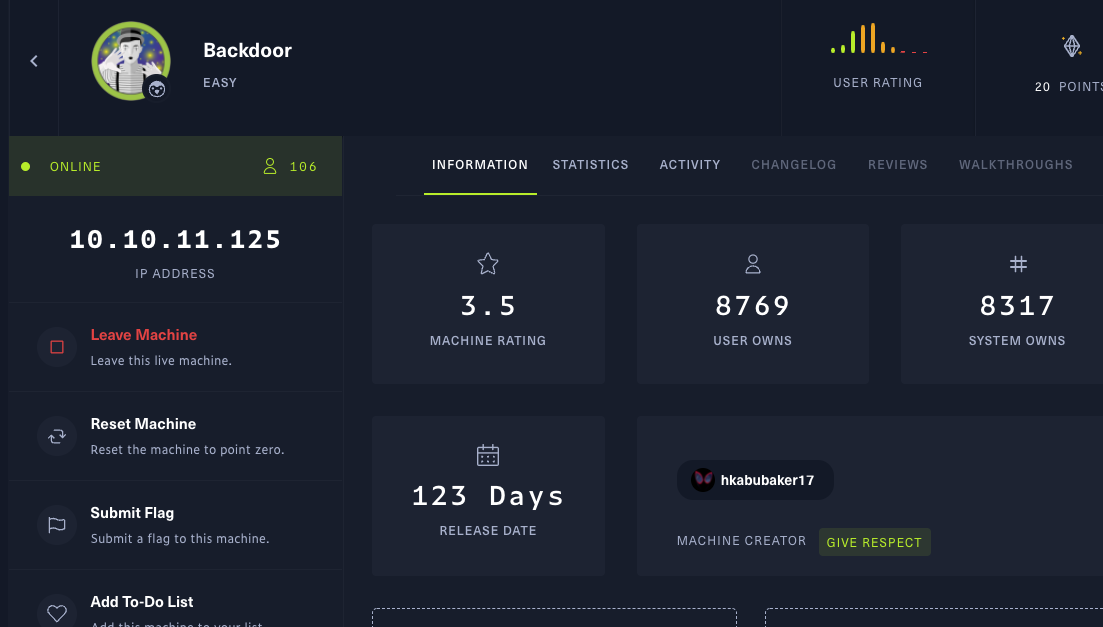 [Hack The Box]靶机2 Backdoor nmap先嗦一把,开了22端口、80端口和1337端口访问是一个wordpress博客网站wpscan扫一下版本是5.8.1再看看网站,这里会跳转backdoor.htb,配置一下hostsecho 10.10.11.125 backdoor.htb >> /etc/hosts扫一下目录这里有目录遍历这里有一个eBook-download的插件在readme里面看到版本信息,找找看有没有什么漏洞版本好像是1.1的确有漏洞,任意文件下载拿到一个数据库的.