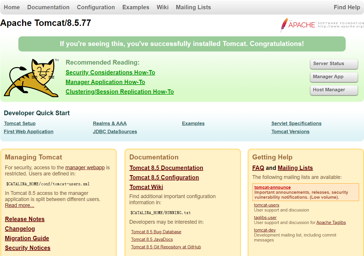 访问 http://localhost:8080/ 网址,显示图示页面即配置成功
