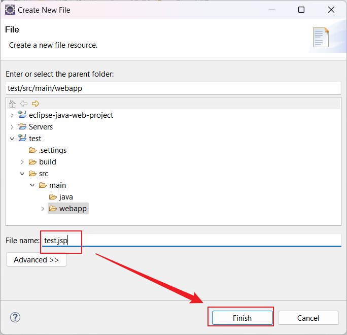 文件 test/test.jsp : 第一个 test 即为上述 Web Module 处设置的 Context root 名称