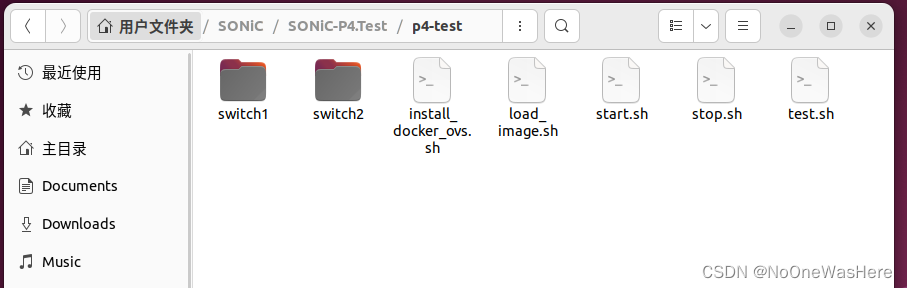 1.首先在VMware中新建一个ubuntu22.04系统,随后可以先在windows系统下https://github.com/sonic-net/SONiC/wiki/files/SONiC-P4/SONiC-P4.Test.tar.gz打开此链接,下载SONiC-P4.Test.tar.gz压缩包,将下载后的压缩包通过QQ邮箱发送到另一个QQ邮箱,随后在Linux系统中登录QQ邮箱接收SONiC-P4.Test.tar.gz压缩包文件(在linux系统Firefox浏览器不知道好不好下载),并解压缩到Linux本地新建的一个SONiC文件夹中。文件夹内容如下: