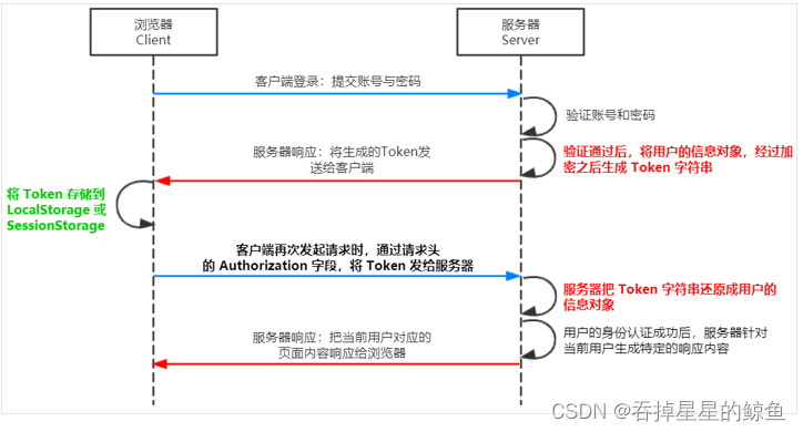 总结:用户的信息通过 Token 字符串的形式,保存在客户端浏览器中。服务器通过还原 Token 字符串的形式来认证用户的身份。