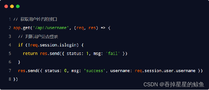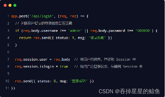 当 express-session 中间件配置成功后,即可通过 req.session 来访问和使用 session 对象,从而存储用户的关键信息