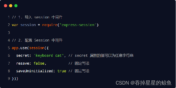 express-session 中间件安装成功后,需要通过 app.use() 来注册 session 中间件,示例代码如下
