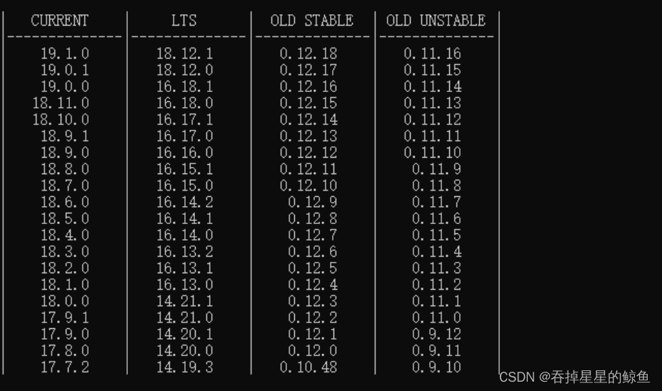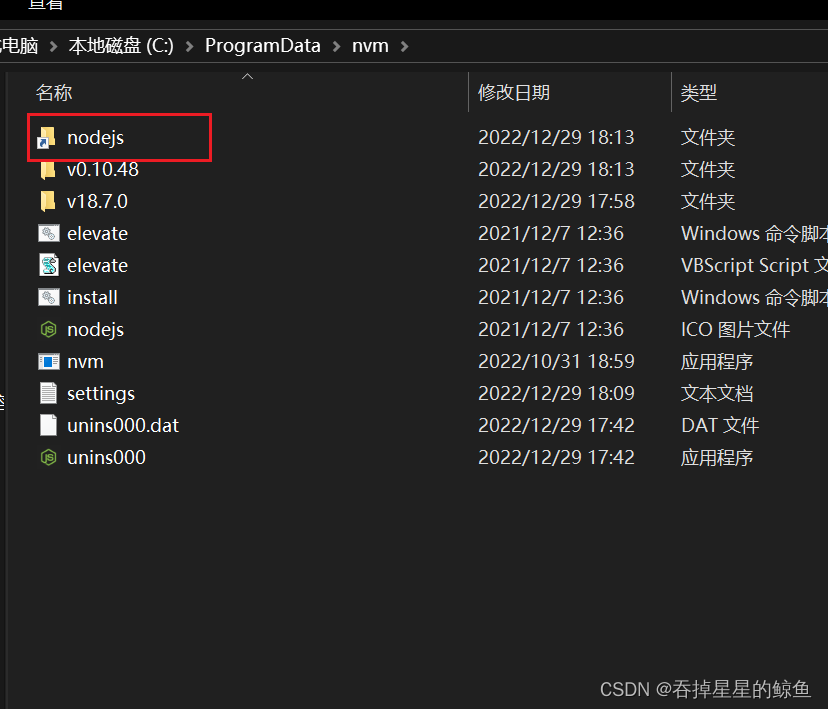 切换到对应的版本号之后,后边有那行内容,就成功了。新建的nodejs中也有相应的内容。