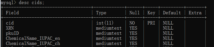 查询表结构:
