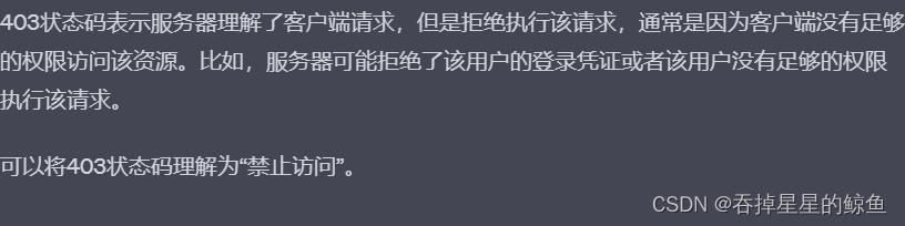 - 403 Forbidden:服务器拒绝请求。