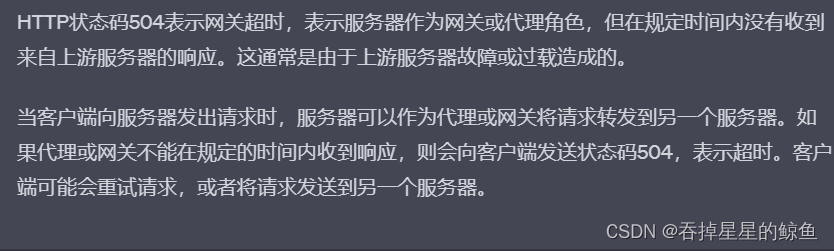 - 504 Gateway Timeout:网关超时。