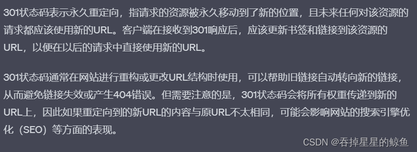 - 301 Moved Permanently:永久性重定向。