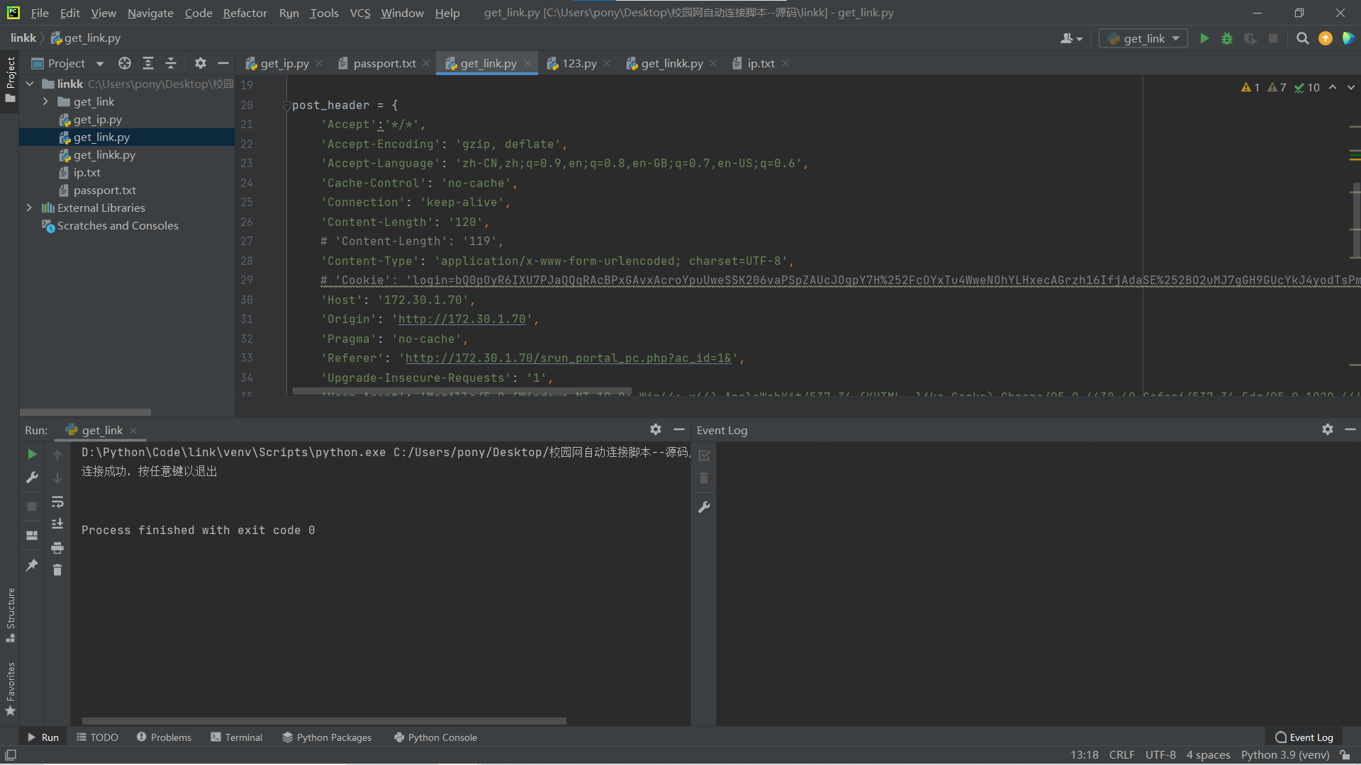 手把手教你python实现校园网自动连接,零基础也可以轻松实现 一个简单易实现的python程序,用来自动连接校园网,打包后任何windows电脑都可以使用,也就是说写完后就可以拿来分享给你们学校别的同学了。