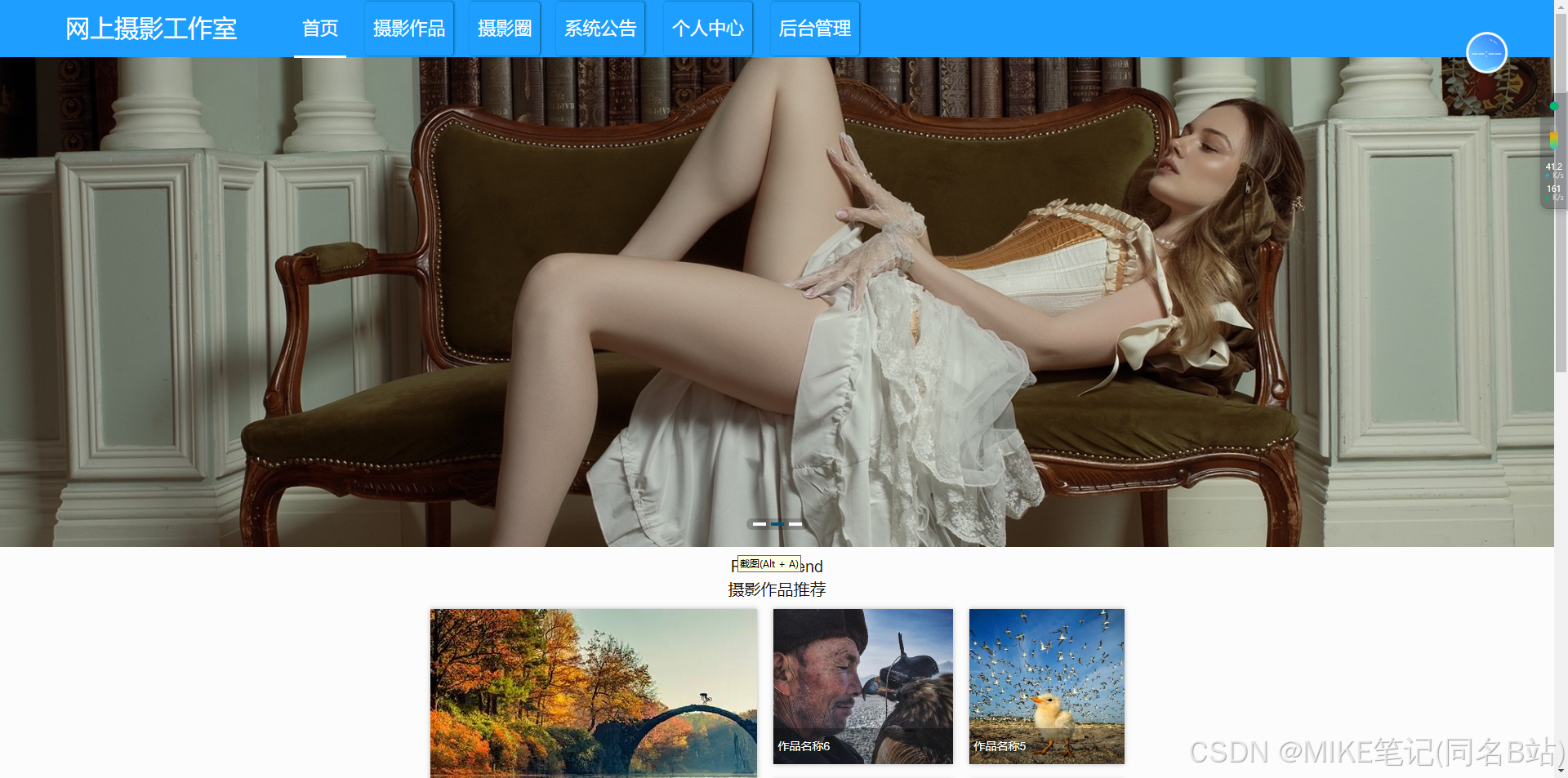 【原创毕设】基于springboot的网上摄影工作室 【原创毕设】基于springboot的网上摄影工作室🥇个人主页@MIKE笔记🥈文章专栏毕业设计源码合集⛄mikenoteSpring Boot是一个用于简化Spring应用的初始搭建以及开发过程的框架。它使用“约定优于配置”的理念,使得开发者能够更快地构建出稳定且可维护的Web应用。该系统使用Spring Boot框架构建后端服务,包括用户认证、权限管理、数据持久化等功能。后端采用Maven作为项目管理工具,用于依赖管理和项目构建。