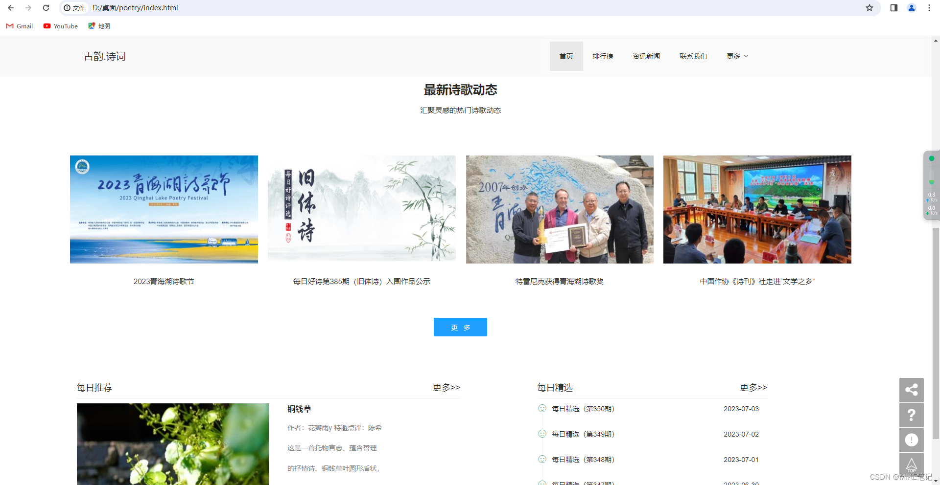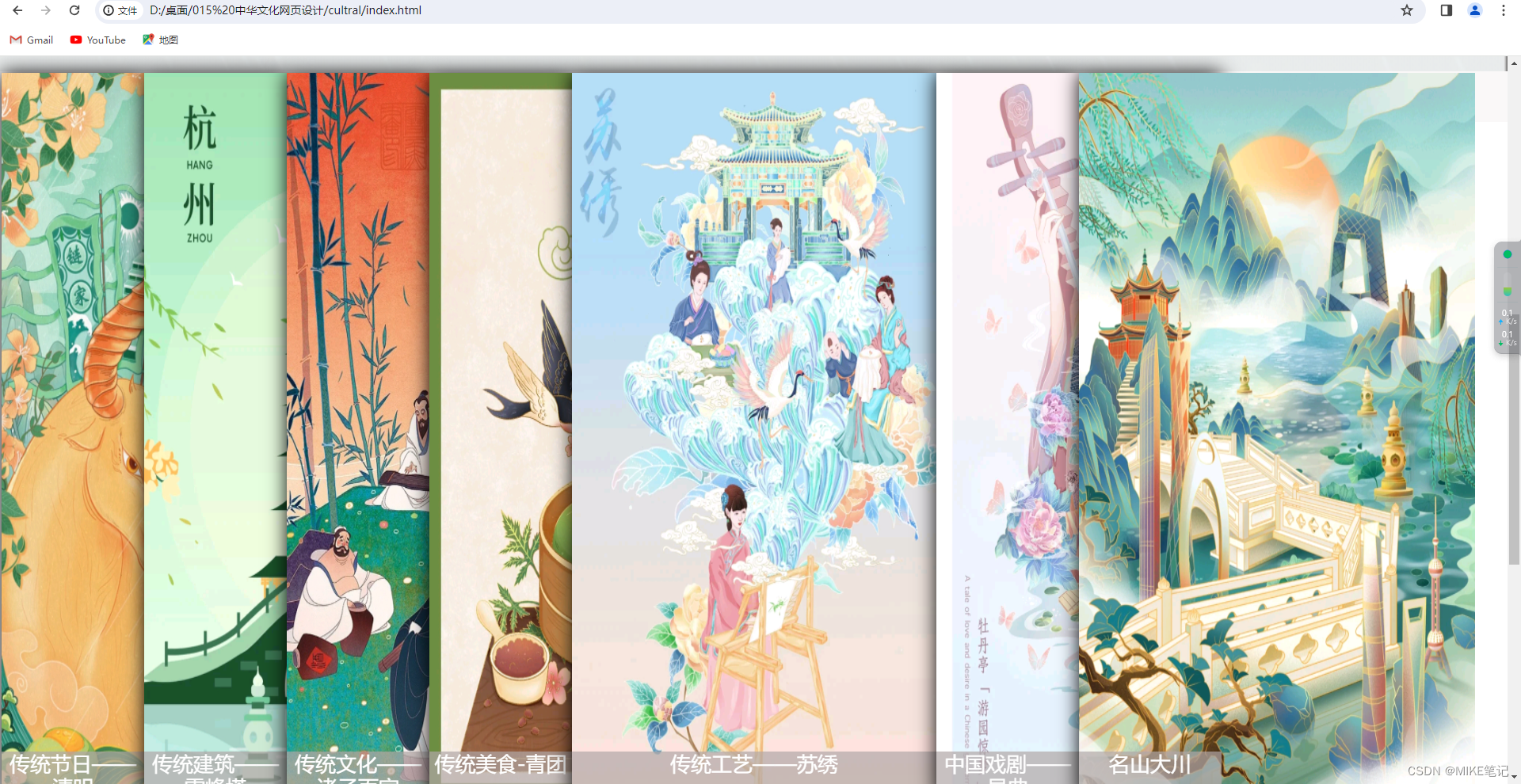 【Web前端期末大作业】中华文化宣传网站 015-【Web前端期末大作业】中华文化宣传网站🥇个人主页MIKE笔记🥈文章专栏Web前端期末大作业⛄15💴带走网站建设工具1.使用VScode(当然使用记事本也是可以的)智能,快捷,支持代码补全,节省了开发时间,并且支持多种语言 只需安装插件配置文件即可。2.网站建设学习资源b站CSDN3.网站建设步骤及思路分享网站建设步骤在我一点学习的导航栏里有更为清晰的体现,这里就不一一赘述了网站的思路分享:整体的布局,以及内容,搜寻所需要的素材,建立站点。