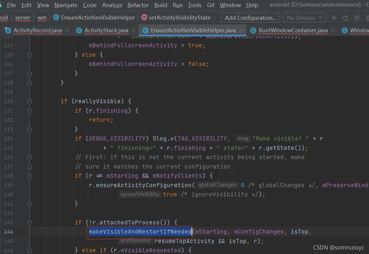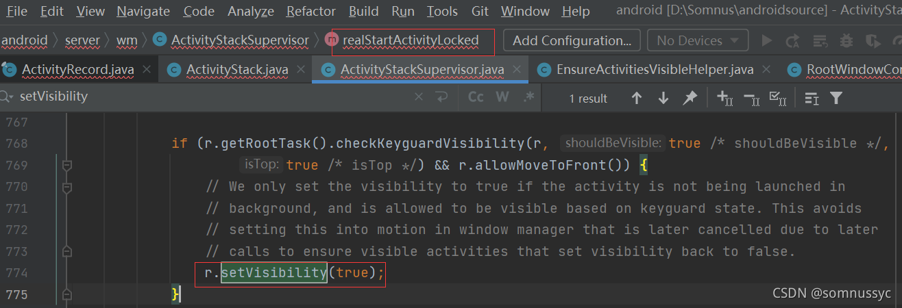 ActivityRecord.setVisibility函数的主要功能是把设置true的ActivityRecord加到DisplayContent.mOpeningApps列表,把设置false的ActivityRecord加到DisplayContent.mClosingApps列表,该函数在每次启动页面(不论热启冷起)的整个过程中可能涉及多次调用,是可重入的,且在执行DisplayContent.executeAppTransition之前都不会真正的commitVisibility(GOOD TO GO阶段才会真正执行),仅仅是填充mOpeningApps和mClosingApps,目的是在GOOD TO GO真正做动效时有目标的退场和入场应用去执行动效。