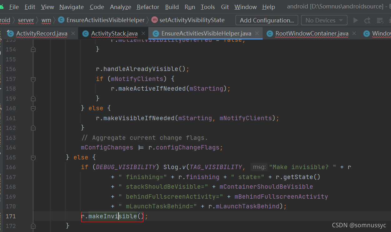 09-08 09:42:05.192 1479 1495 V WindowManager: setAppVisibility(Token{6d196ad ActivityRecord{e45e1e5 u0 com.wtf.launcher/.Launcher t5815}}, visible=false): mNextAppTransition=TRANSIT_TASK_OPEN visible=true mVisibleRequested=true Callers=com.android.server.wm.ActivityRecord.setVisibility:4405 com.android.server.wm.ActivityRecord.makeInvisible:5168 com.android.server.wm.EnsureActivitiesVisibleHelper.setActivityVisibilityState:182 com.android.server.wm.EnsureActivitiesVisibleHelper.lambda$Bbb3nMFa3F8er_OBuKA7-SpeSKo:0 com.android.server.wm.-$$Lambda$EnsureActivitiesVisibleHelper$Bbb3nMFa3F8er_OBuKA7-SpeSKo.accept:12 com.android.internal.util.function.pooled.PooledLambdaImpl.doInvoke:307