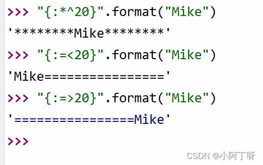当使用format()方法格式化字符串的时候,首先需要在"{}”中输入“:”,然后在":"之后分别设置<填充字符><对齐方式><宽度>。