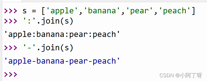 join() #将列表中多个字符串进行连接,并在相邻两个字符串之间插入指定字符,返回新字符串