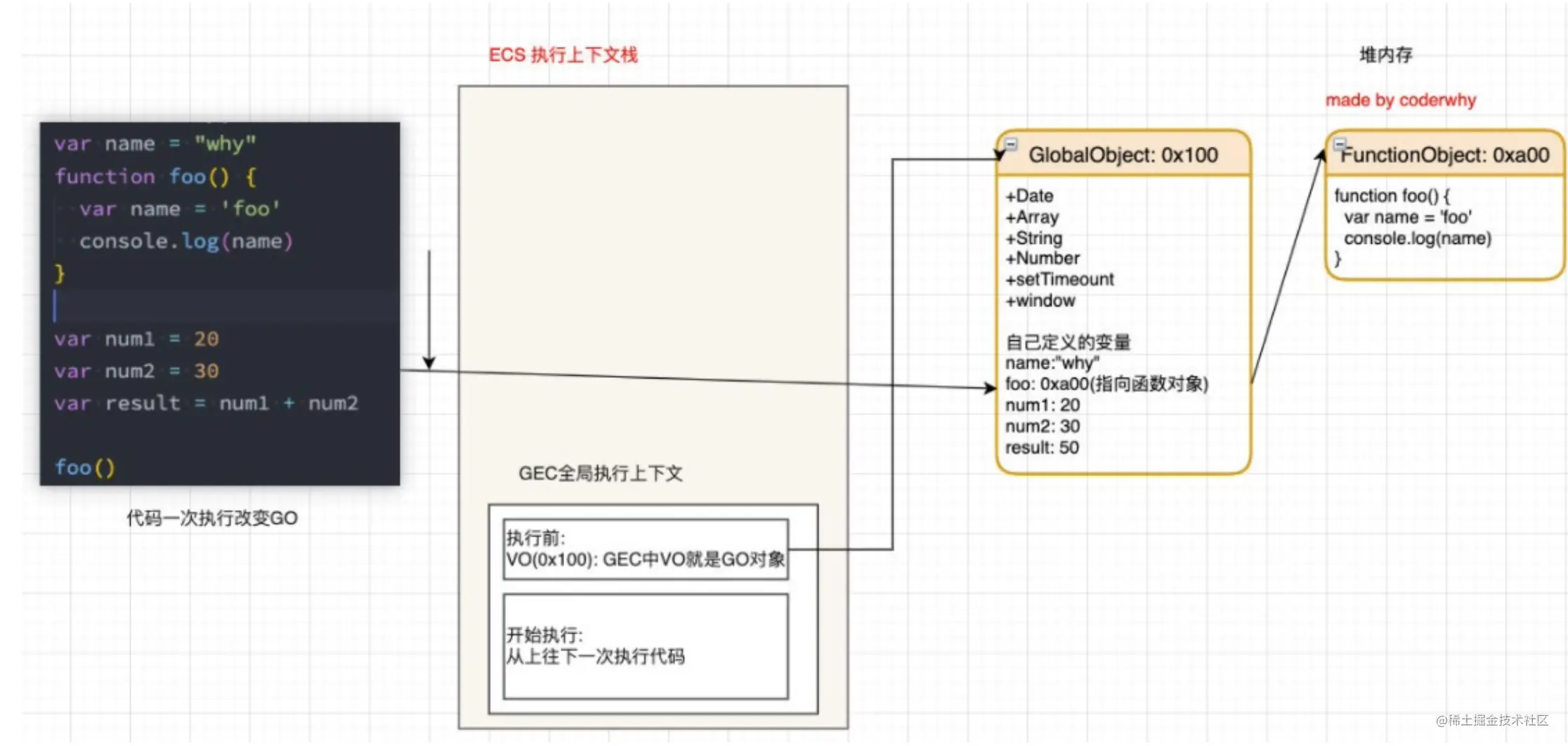 - 全局的代码块为了执行会构建一个 Global Execution Context(GEC)