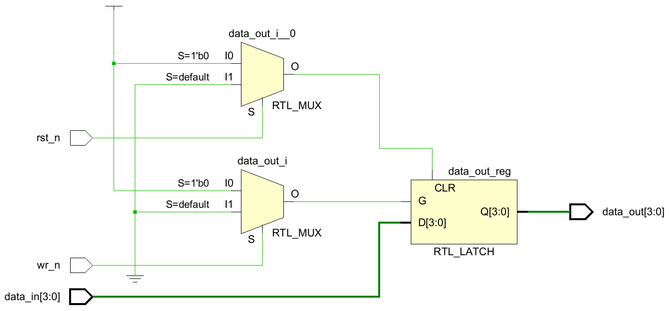 关于锁存器的后仿真 首先是关于锁存器,如果一段组合电路,if-else语句中如果缺少else分支,很容易就会生成锁存器。或者是即便有else分支,但是else分支的赋值仍然等于它本身,这也会导致锁存器的生成。for examplemodule lat(wr_n, data_in, data_out, rst_n ); input wr_n; input [3:0]data_in; input rst_n; output [3:0]data_out; reg