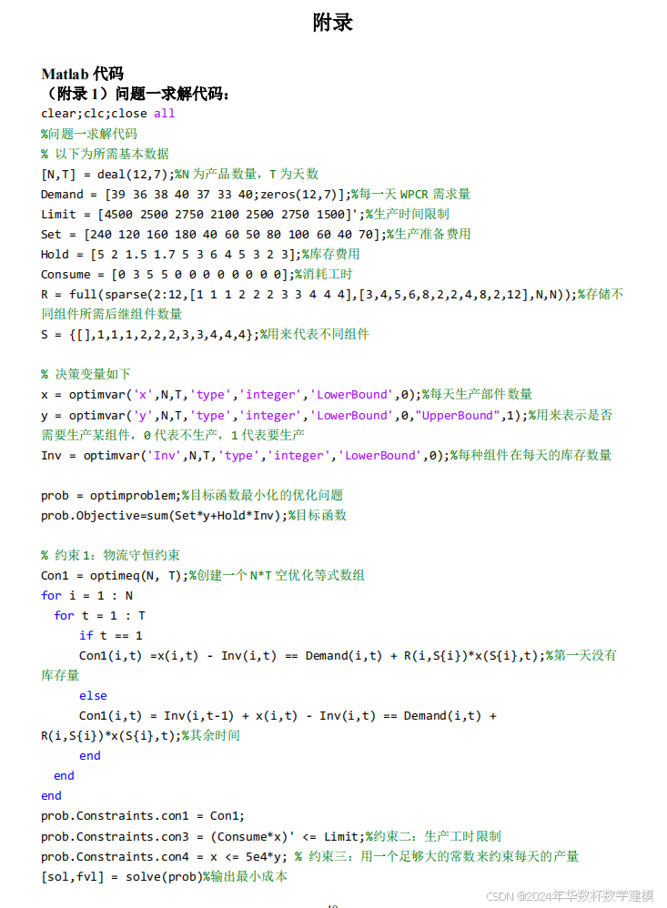 对不同的问题,只需在本模型基础上,增设约束条件,使用 Matlab 代码求解即可。