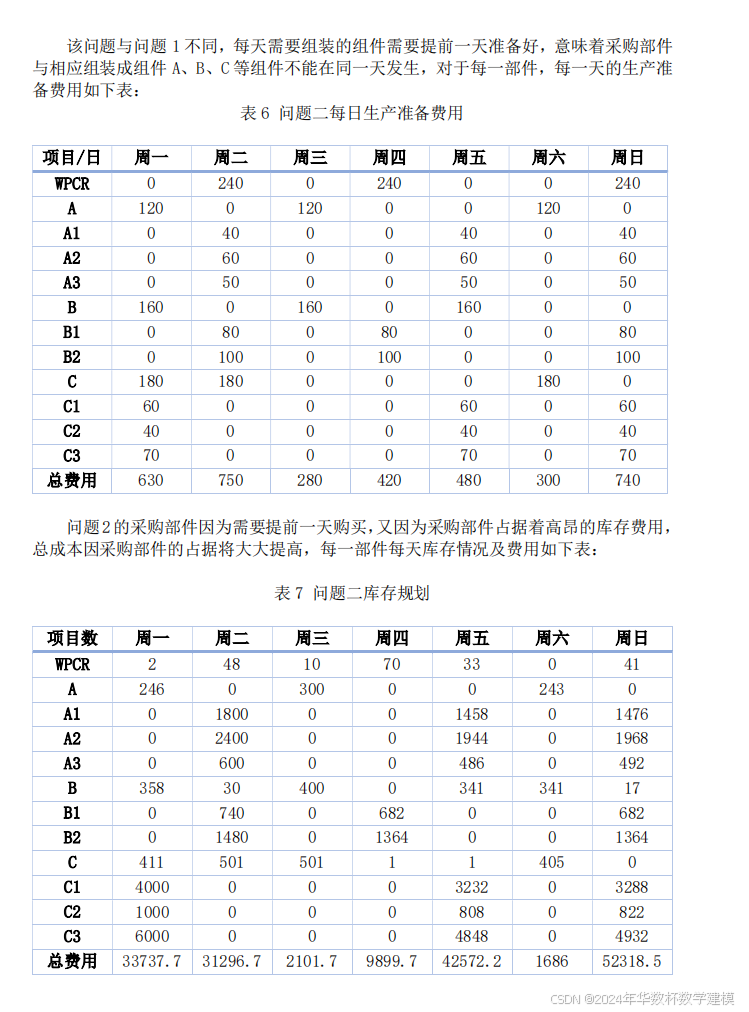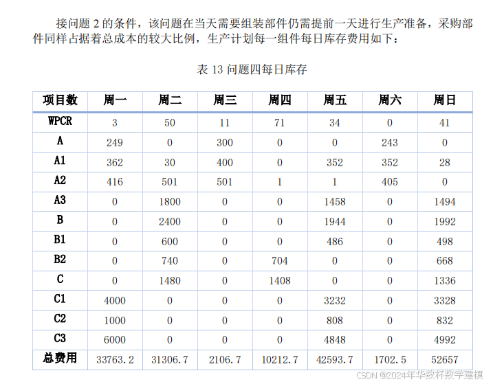可以马 上用于当天组装成 WPCR。若要求总成本最小,请问如何制定每周 7 天的生产计