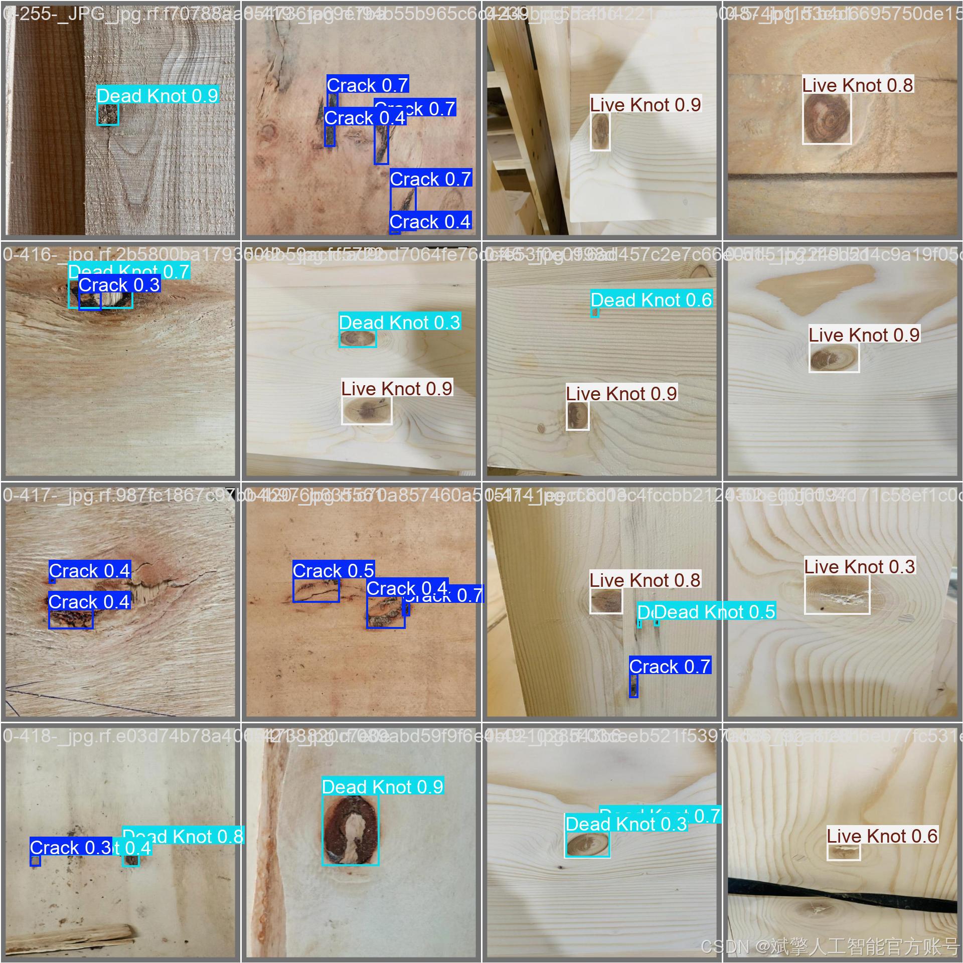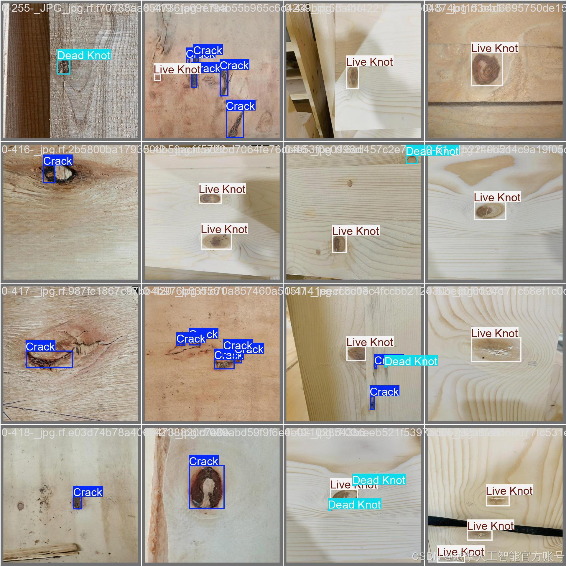 木材作为重要的天然材料,广泛应用于建筑、家具制造等领域,但其内部或表面的缺陷(如裂纹、死节和活节)会显著降低材料强度和经济价值。传统缺陷检测依赖人工目视或简单机械测量,存在效率低、一致性差等问题。近年来,基于深度学习的目标检测技术(如YOLO系列模型)在工业缺陷检测中展现出巨大潜力。然而,针对木材缺陷的专用检测系统仍面临数据集稀缺、模型泛化能力不足等挑战。