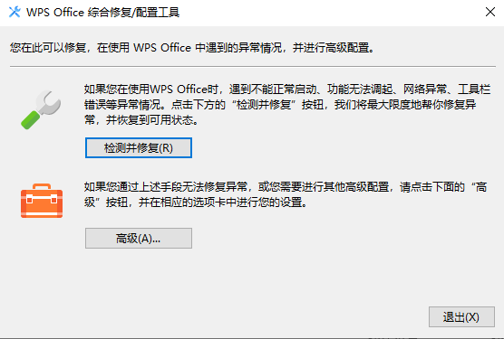 点击右上角设置->配置和修复工具->检测并修复