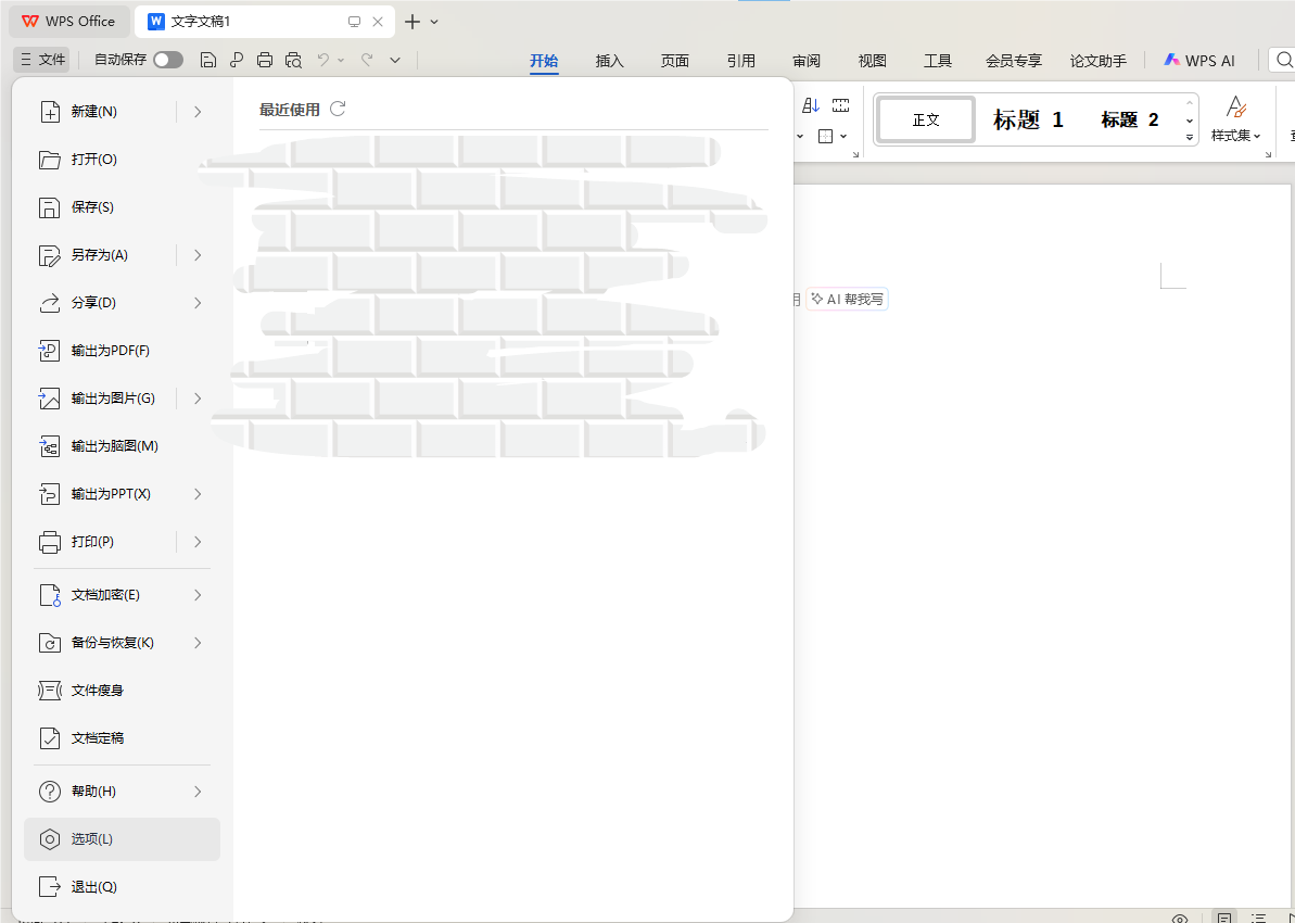 随便打开或者新建任意格式的文件,点击文件->选项