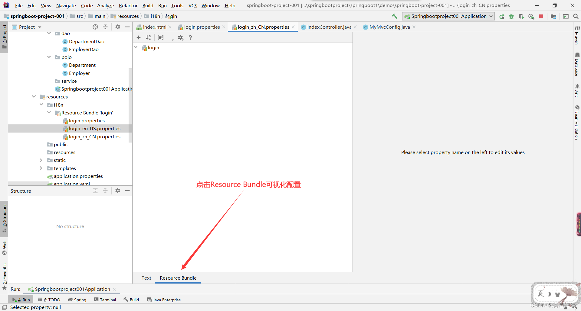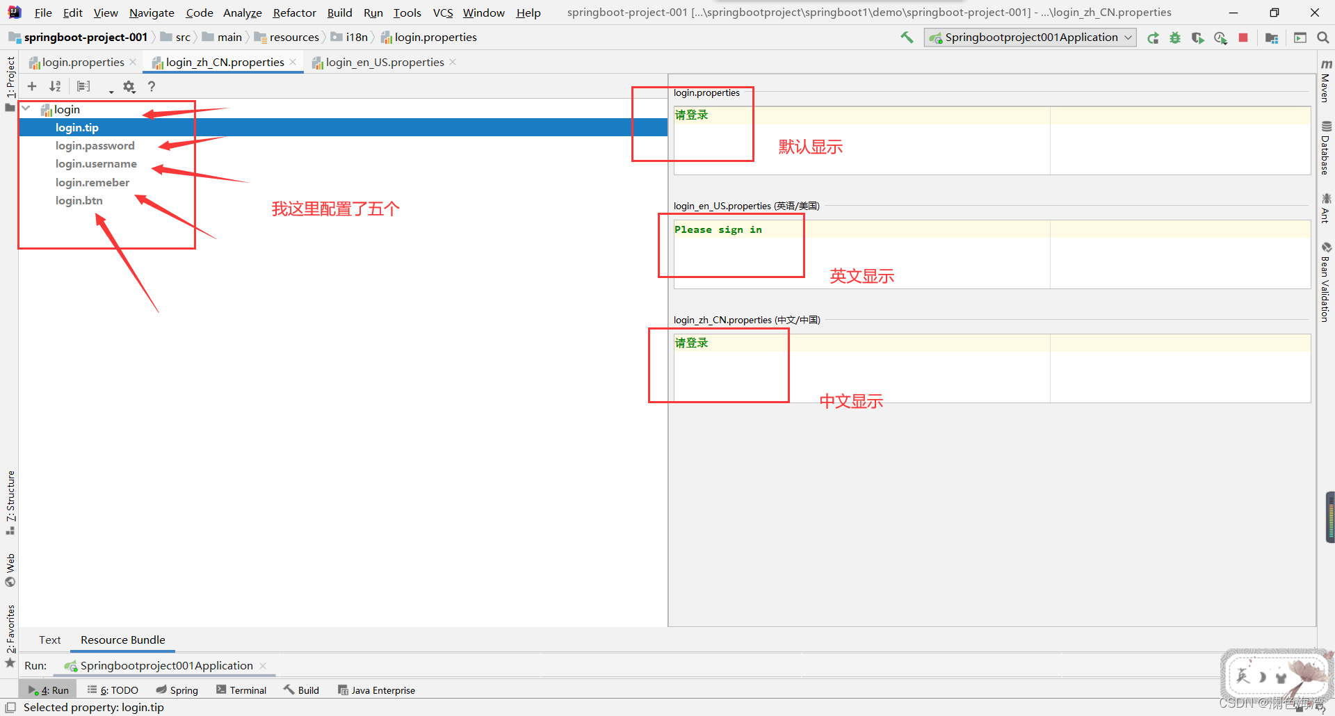 第一步:在resources文件夹下的i18n文件夹下创建三个properties文件如下图所示: