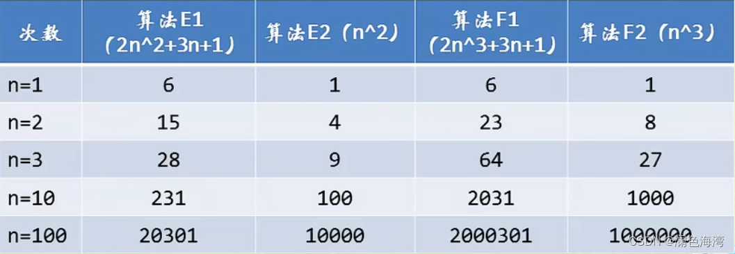 当 n = 1时,算法A1效率不如算法B1,当 n = 2 时,两者效率相同;当 n > 2 时,算法 A1 就开始优于算法 B1 了,随着 n 的继续增加,算法 A1 比算法 B1 逐步拉大差距,所以总体上算法 A1 比算法 B1 优秀~