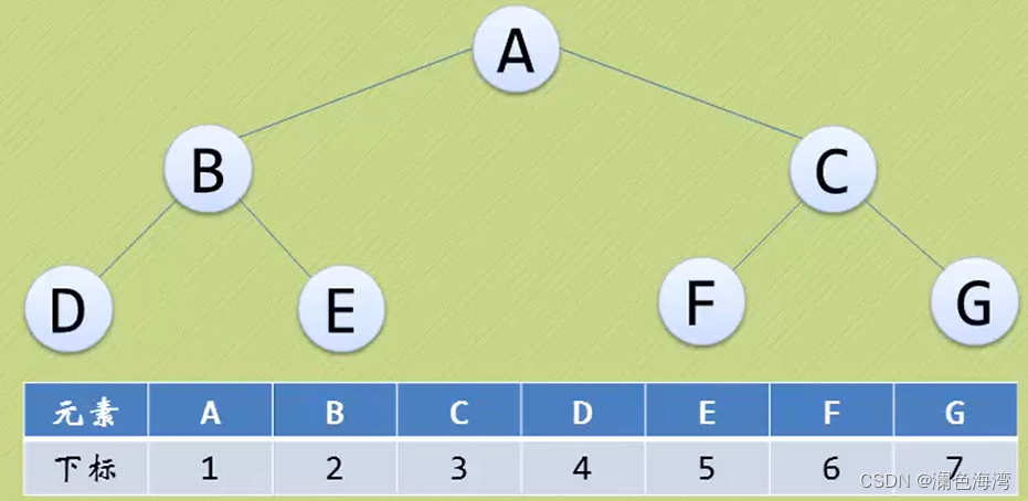 - 二叉树的顺序存储结构就是用一维数组存储二叉树中的各个结点,并且结点的存储位置能体现结点之间的逻辑关系;