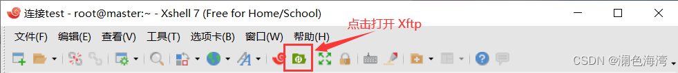 Xshell 连接好 Linux 之后,在 Xshell 中打开 Xftp;