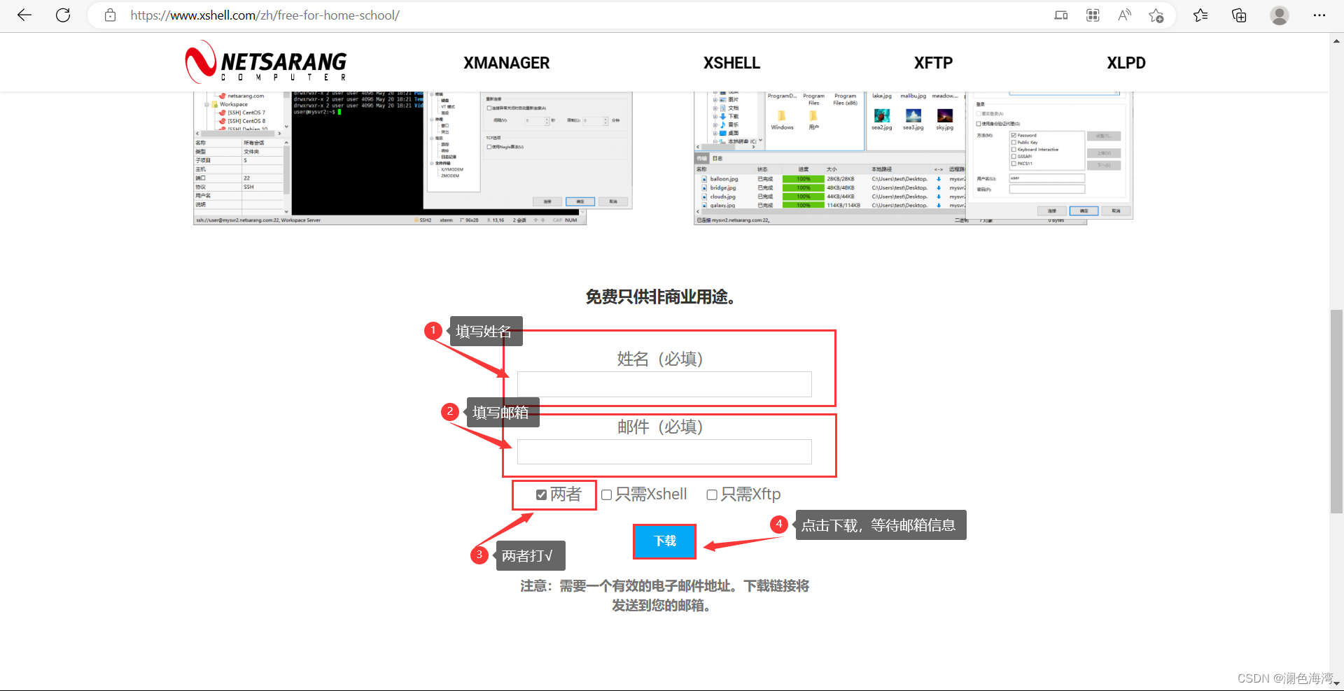进入官网 免费下载 -> 家庭/学校免费 - NetSarang Website (xshell.com)