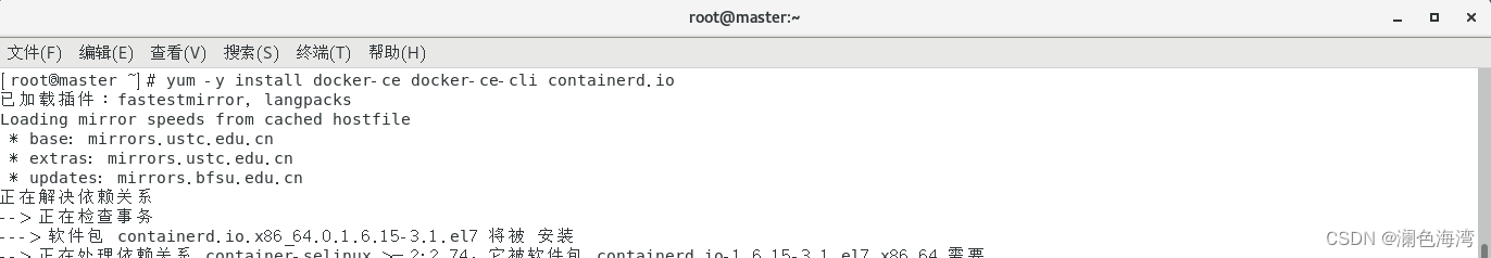 用以下命令安装阿里云的镜像 [ 这里通过 docker 官网去安装镜像也可以,只是安装速度会比较慢 ] ->