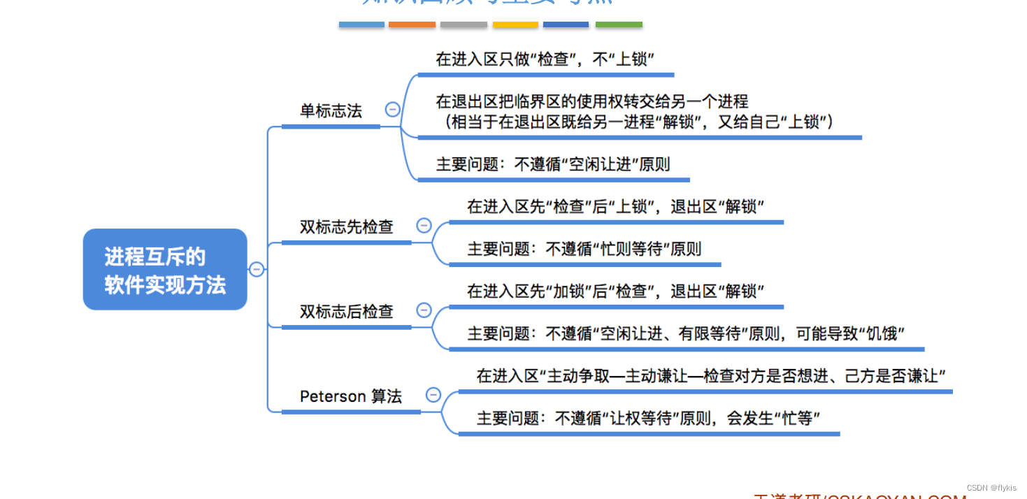 若按照①⑤②⑥③⑦....的顺序执行,P0和P1将会同时访问临界区。因此,双标志先检查法的主要问题是:违反“忙则等待”原则。