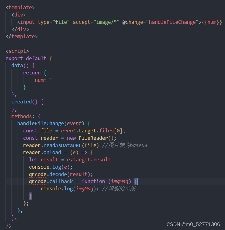 h5识别二维码图片 试了很多插件都没有实现,@zxing、qrcode-decoder、jsqr效果都不是很好,不知道是不是我用的方法不对,这些可以扫描手机上保存的二维码,但是拍照保存到本地的二维码识别不出。看到了一篇关于reqrcode.js的帖子,试了一下,效果很不错,截图的二维码 拍照的二维码都可以识别,话不多说,上图。我们有一个项目,拍照识别图片中的二维码获取数据反显到Input中。reqrcode.js网上可以搜的到,搜不到的也可以私我。