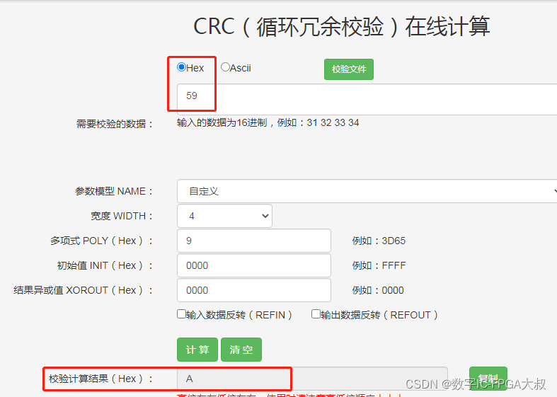 下面我们将通过verilog代码实现,以及CRC计算器来验证。